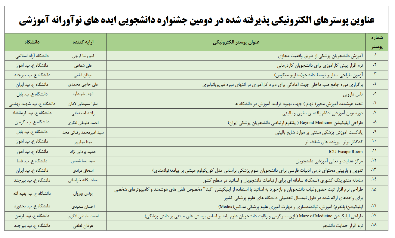 • جشنواره دانشجویی ایده های نوآورانه آموزشی